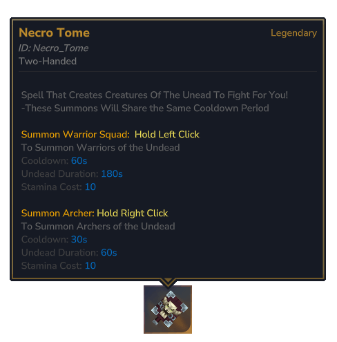 -will need to fix how the summon is spawned, with the new update they use Bone piles but i dont like using a source for my summons except for a replenishable resource like your stamina or Mana. (Sometimes summon wont spawn)