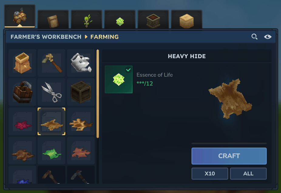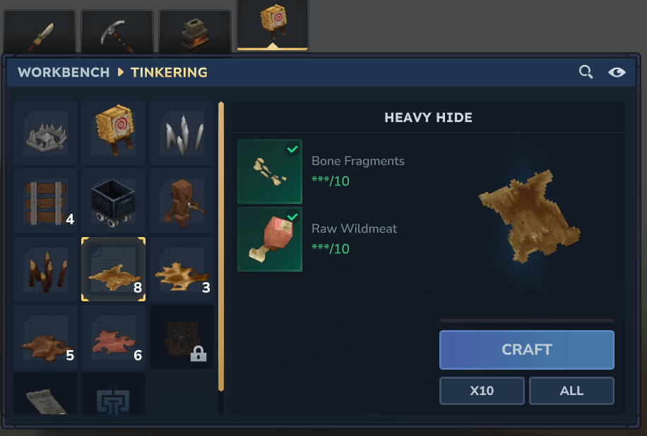 - You can now craft Heavy Hide from 10 Raw Wildmeat & 10 Bone Fragments.