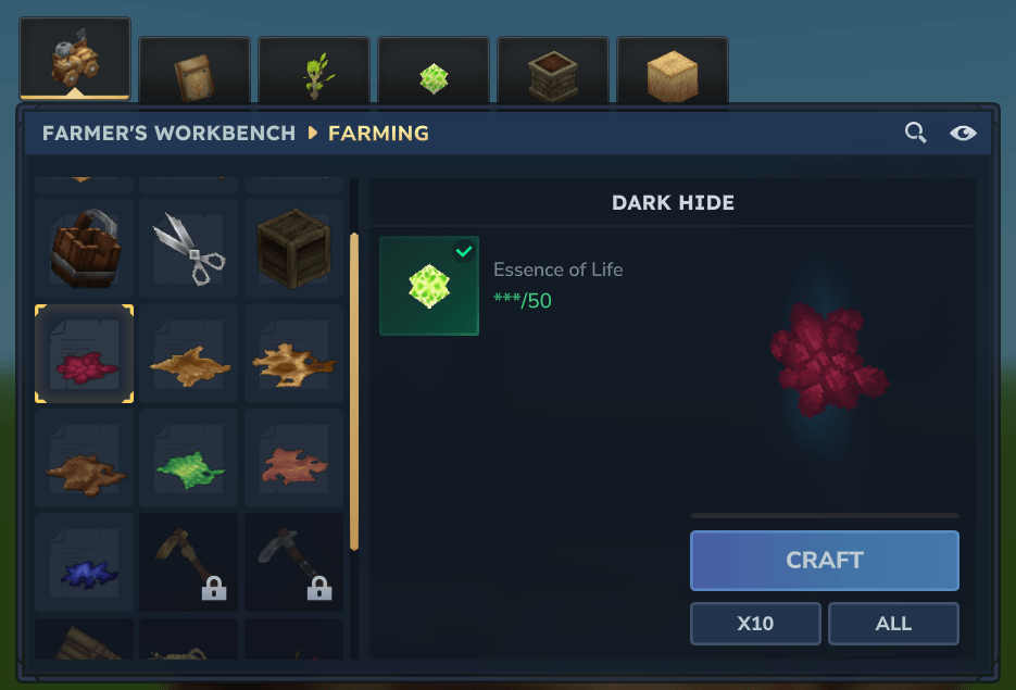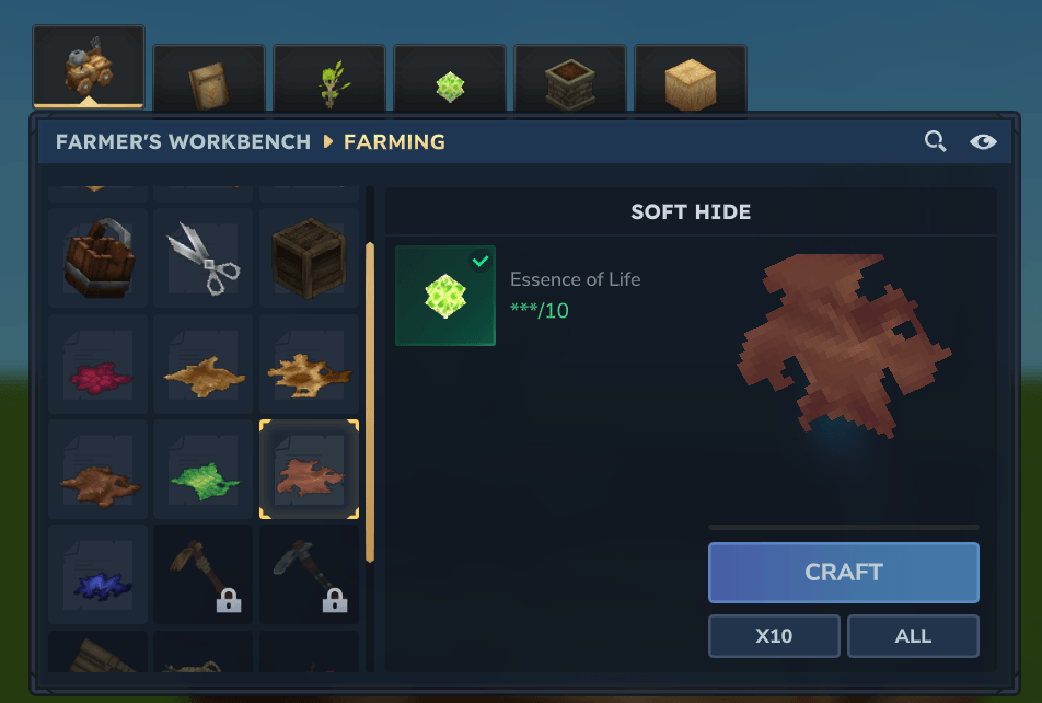 - You can now convert 10 Life Essence into 1 Soft Hide.