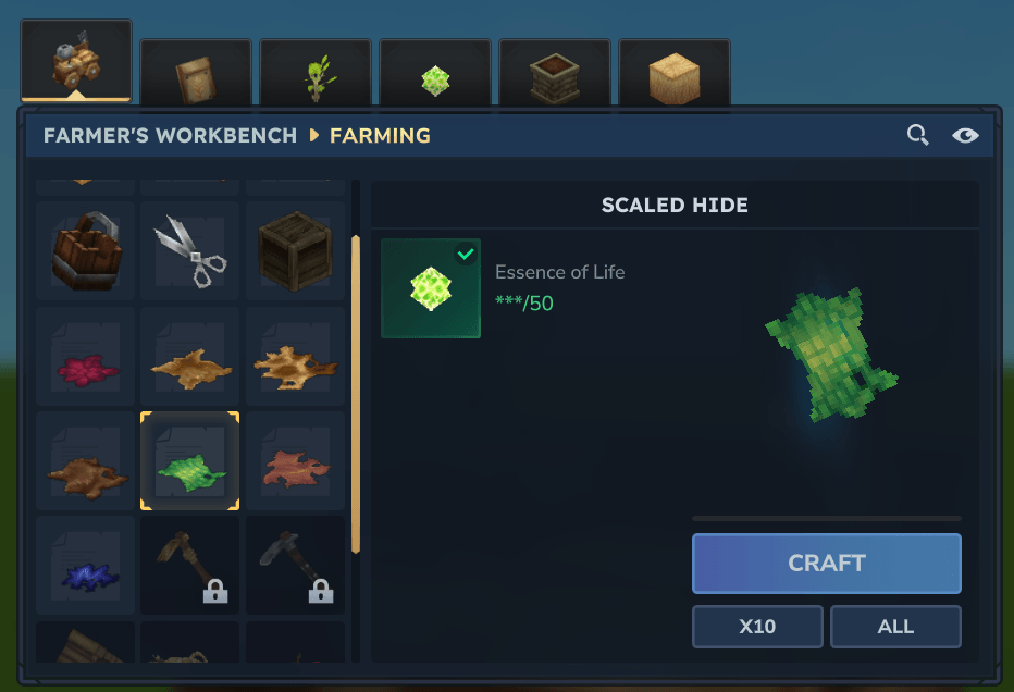 - You can now convert 50 Life Essence into 1 Scaled Hide.