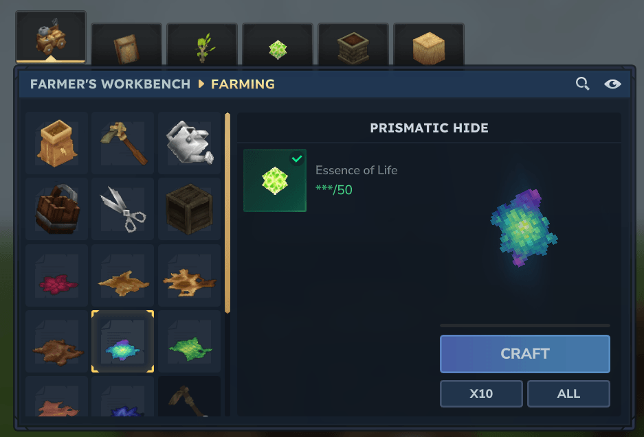 - You can now convert 50 Life Essence into 1 Prismatic Hide.