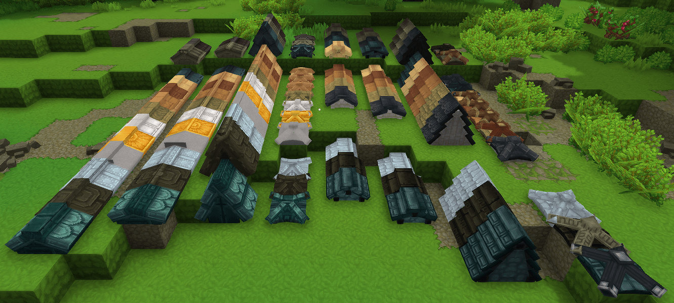 Вы когда-нибудь оказывались в ситуации, когда вам нужен один блок, чтобы закрыть крышу? Теперь у вас есть выбор 133 гребня Чтобы сделать это. У каждого материала есть свои 3 варианта, Мелкий, Нормальный и Крутой хребет.