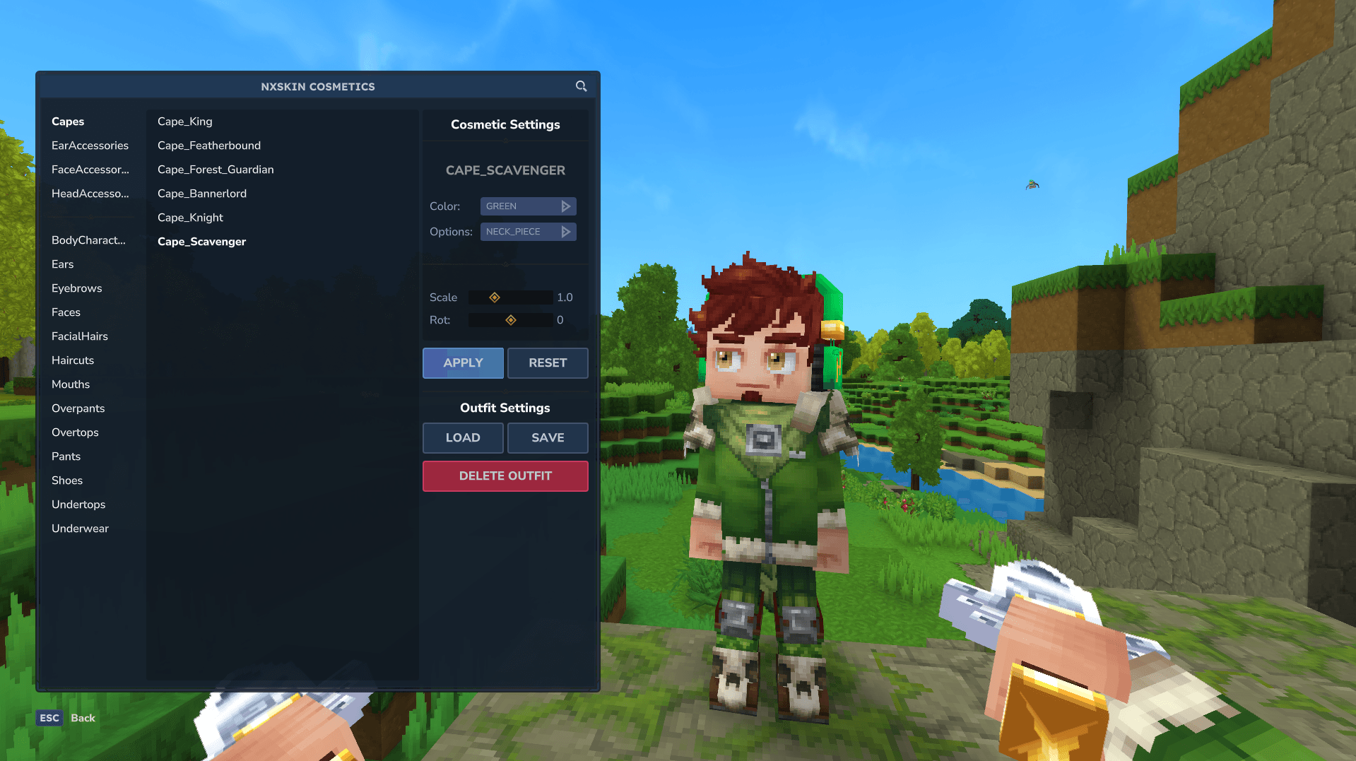 /nxskin cosmetic.Customize: Browse through categories (Capes, Overtops, Pants, etc.).