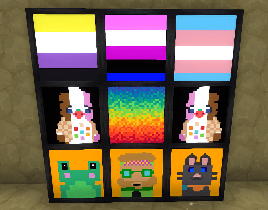 Кроме того, у меня был вевер-спрос, можно ли добавить больше, чем просто радужная панель, так что просто потому, что я закончил свой поток, как опоздать, я добавлю один для Genderfuild, как я гендерный. Для одного трансгендерный 1 для небинарный Я планирую добавить больше экстарных панелей, таких как флаг гордости, но пока это хорошо.