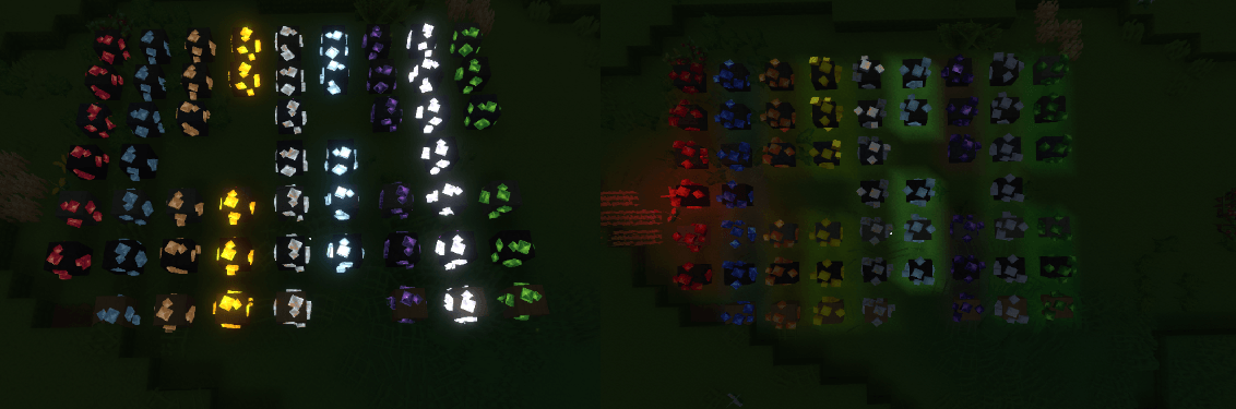 100% светящиеся руды для максимальной видимости во всех условиях освещения