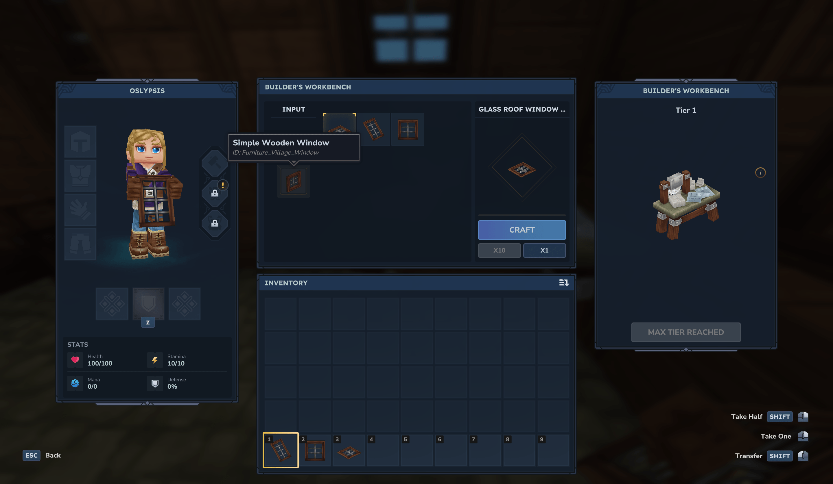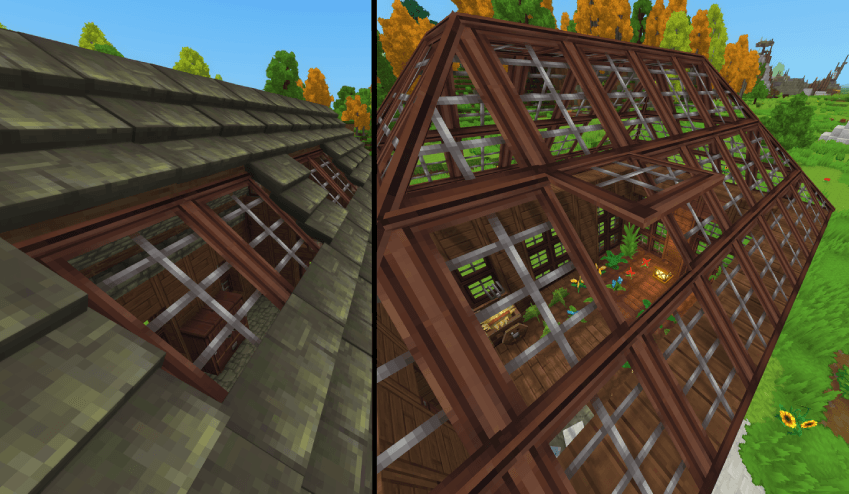 This mod adds 3 variants of glass window roofs: slanted, flat, and vertical. The window texture used matches the "Simple Wooden Window." Craftable from Simple Wooden Windows in the builder's workbench on a 1 to 1 ratio.