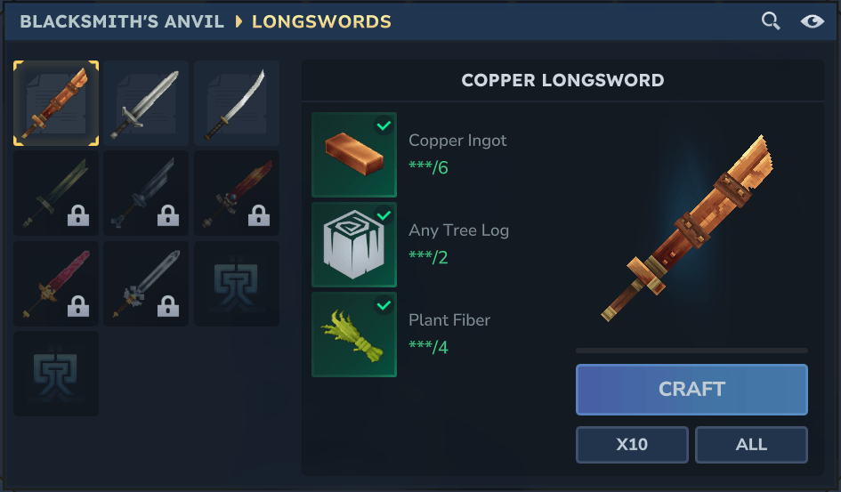 - Longswords (some are craftable, some require recipes, and others are obtained purely as drops)