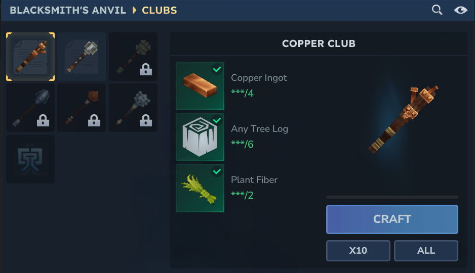 - Clubs (available as both craftable items and enemy drops)