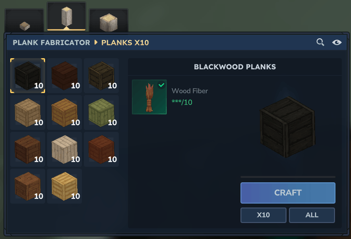 Plank Fabricator is a new bench that allows you to transform Any Wood you gathered in Any Plank you want.