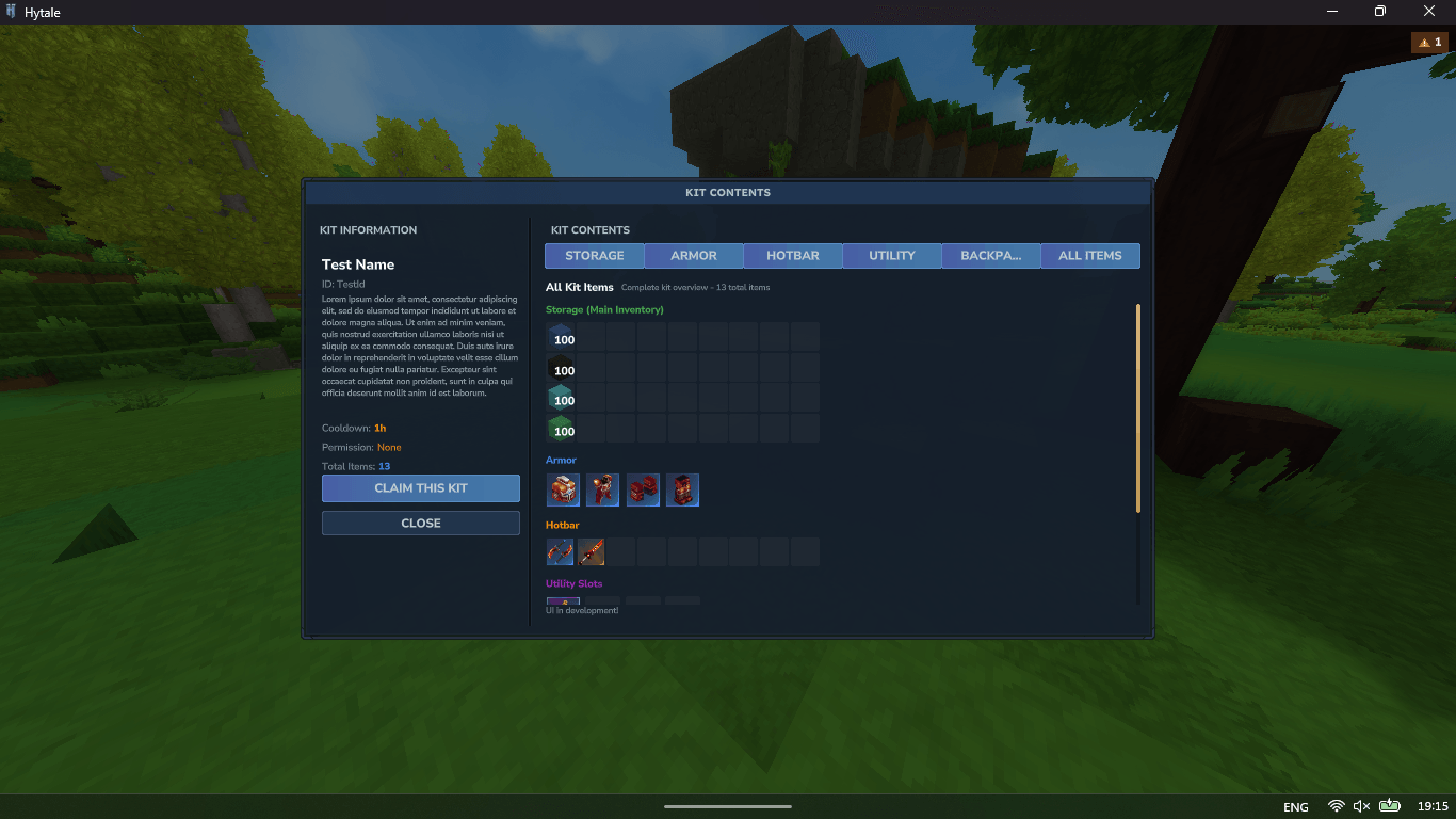 A powerful, feature-rich kit management plugin for Hytale servers that allows administrators to create, manage, and distribute predefined item sets to players with extensive customization options.