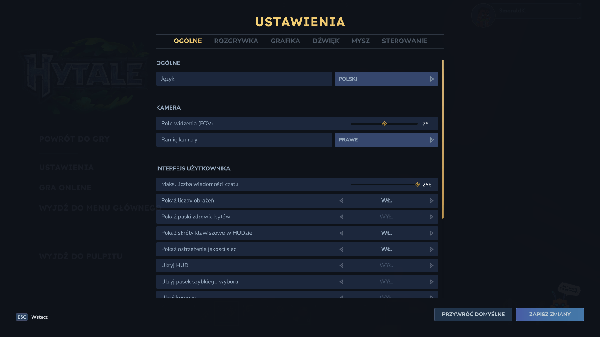 - Uruchom Hytale, idź do ustawień gry i zmień język na polski.