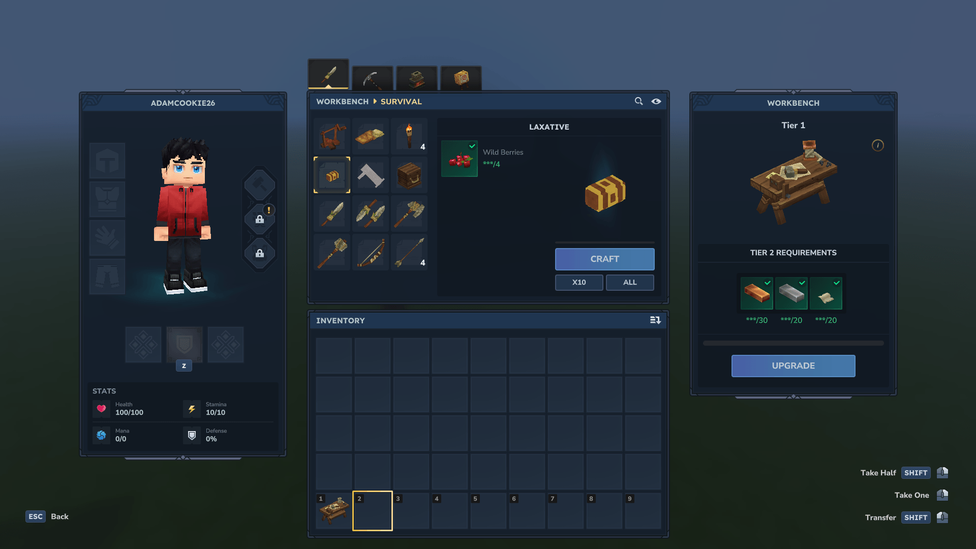1 слабительное = 4 дикие ягоды - Workbench Tier 1