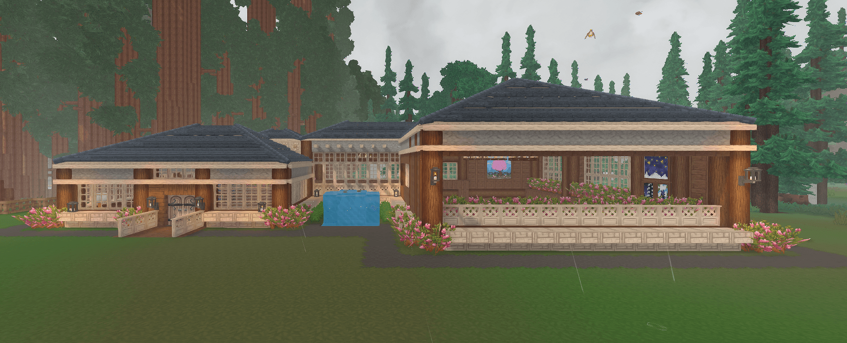 At the center of the estate, the water feature adds movement and atmosphere while connecting the main sections of the home. Open pathways encourage exploration and customization, allowing players to add personal touches such as lighting, landscaping, or bridges without disrupting the overall design.
