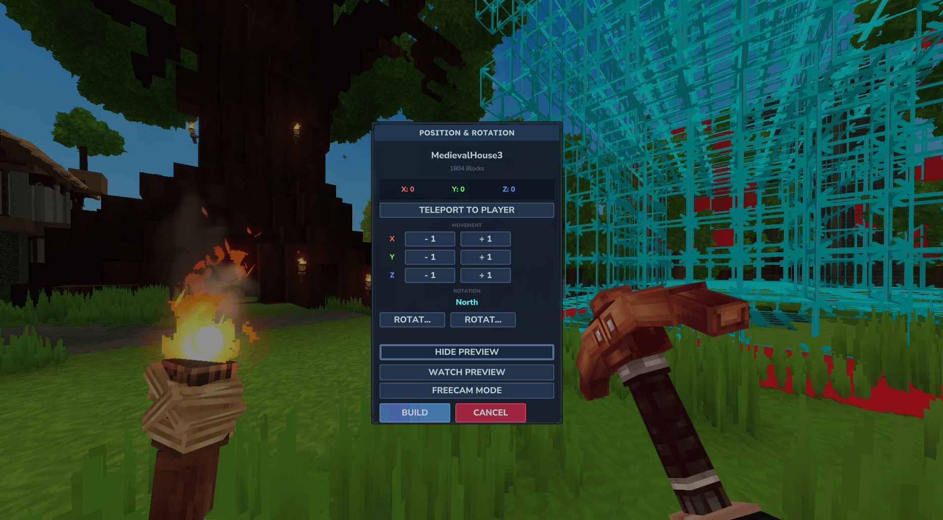 - Self-Build Mode - Place blocks manually with visual guidance. Perfect for survival!