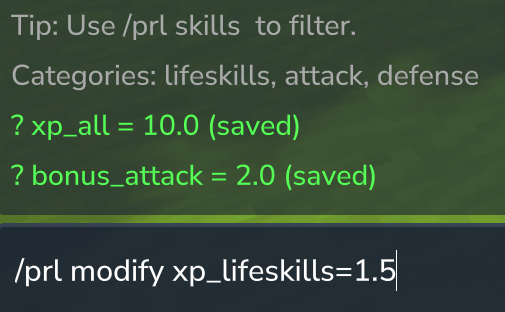 /prl modify xp_lifeskills=3.0 # Triple gathering XP