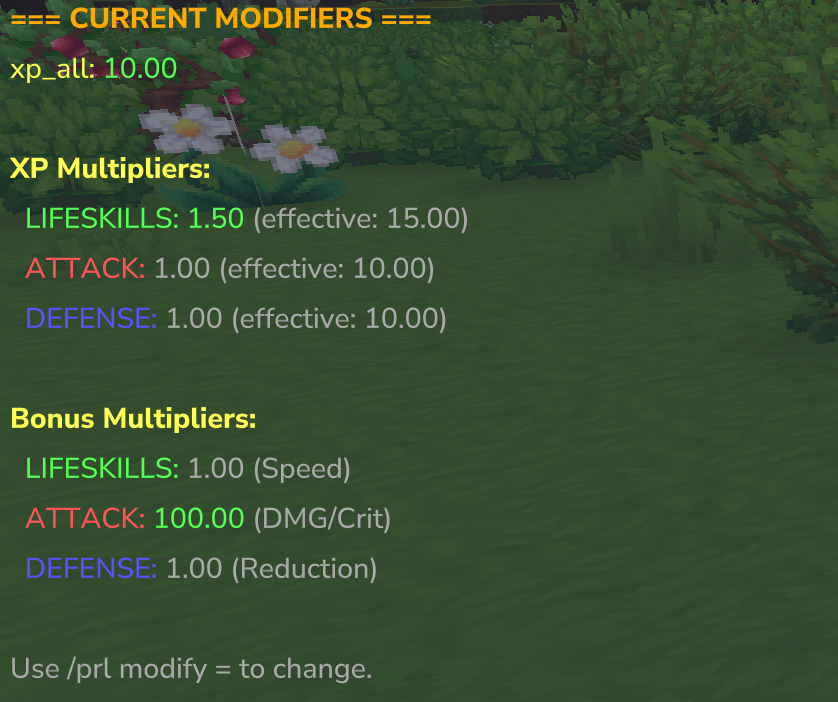 /prl modify xp_all=2.0 # Double ALL XP gains