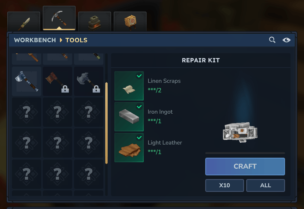 - Locked all Weapons, Armour, and Tools behind Recipes