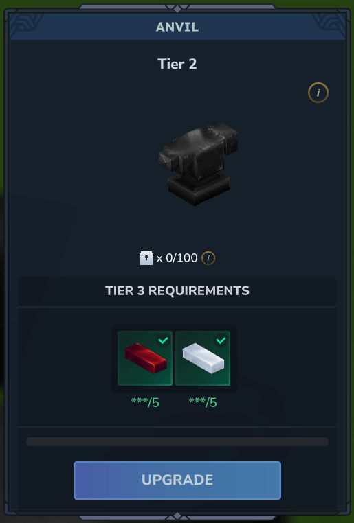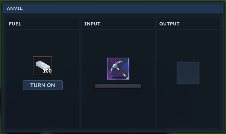 Tiered Progression: Repair capabilities scale as you upgrade your anvil.