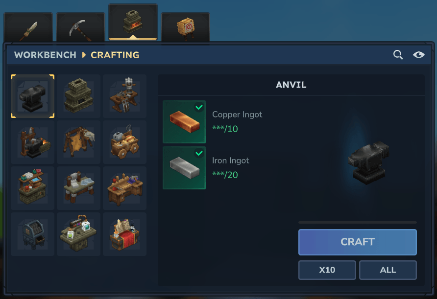 Добавлена полностью функциональная система ремонта, которая позволяет игрокам восстанавливать инструменты, оружие и броню с помощью специализированной наковальни.