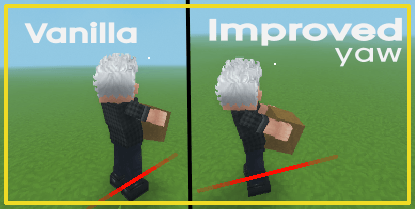 Block.json(Server\Item\Animations\). - Widens the yaw limit at which the player turns the direction as the camera, by overriding both yaw angleRange values in the vanilla