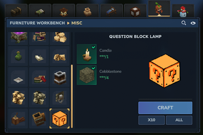 Этот мод добавляет ремесленный Блок вопросов В Хитэйл. Он даже играет в Звук монеты Когда вы взаимодействуете с ним!