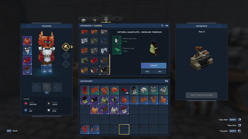 С помощью этого мода каждая часть брони может быть перекрашена другим минералом брони. Например, у вас может быть кусок грудной клетки митхрила, окрашенный торием, или кобальтовые перчатки, окрашенные адамантитом.