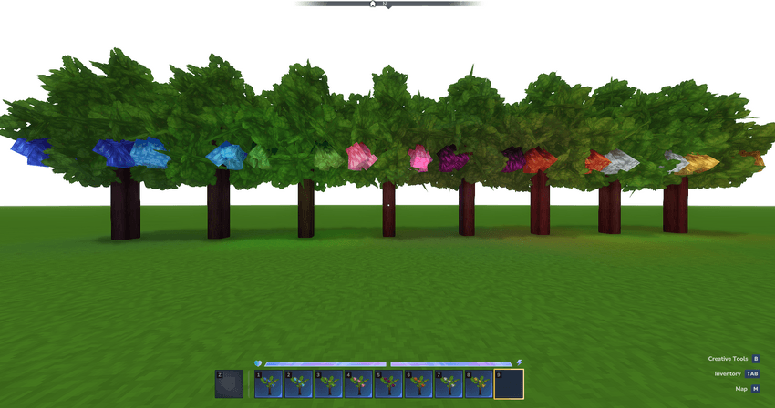 Craftable saplings that when grown produce different resources, similar to apple trees.