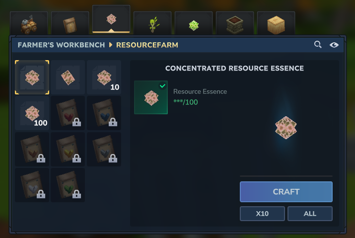 Он также вводит совершенно новый тип эссенции под названием ResourceEssence. Когда вы собираете эти ресурсные растения, вы получаете капли ResourceEssence (масштабируемые аналогично тому, как Essence of Life происходит от обычных продовольственных культур). Вы можете использовать его для: