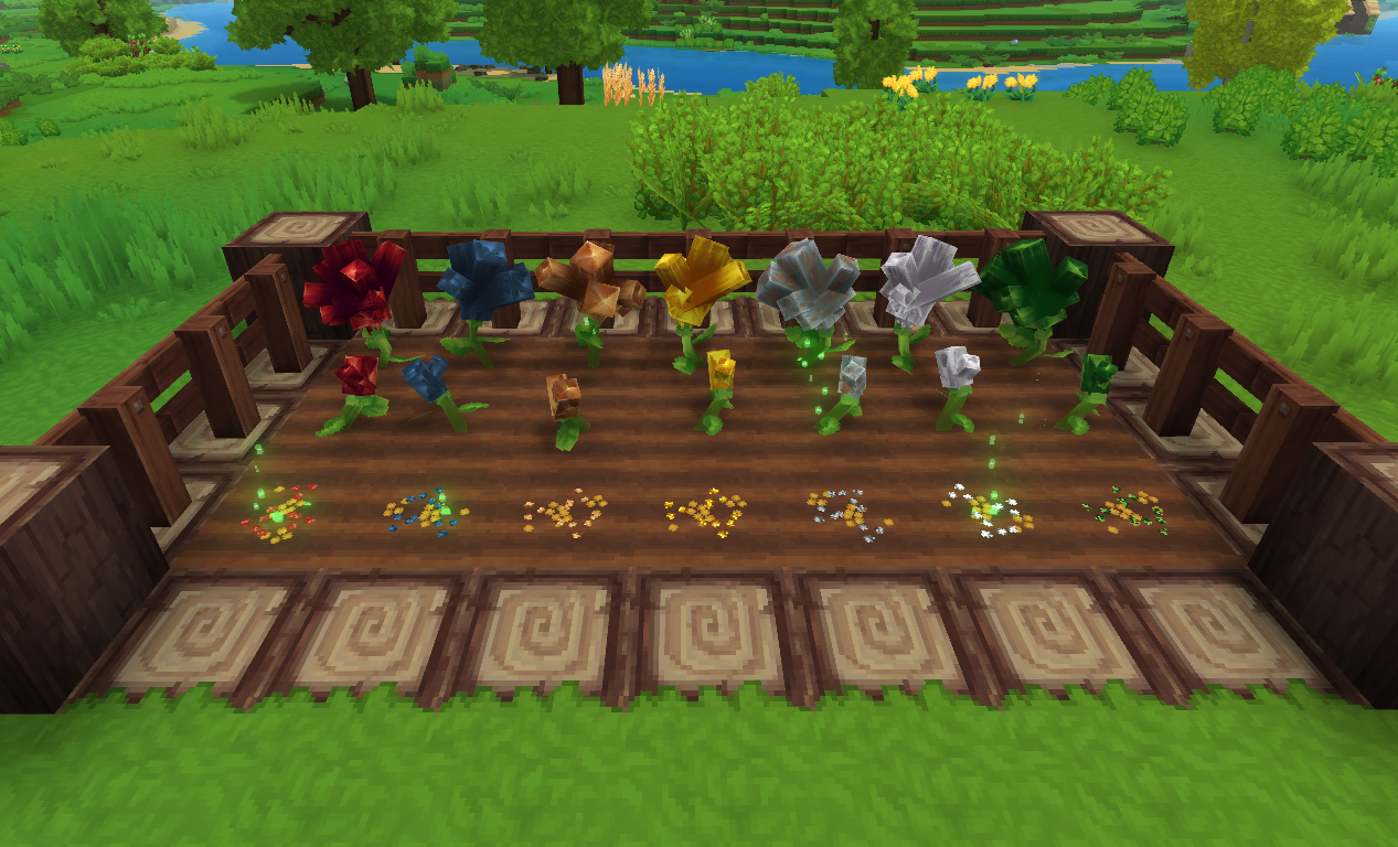 Мод добавляет специальные ресурсные растения для каждой ванильной руды, которую вы в настоящее время можете получить в игре: медь, железо, ториум, серебро, золото, кобальт, адамантит и все остальное. Вы сажаете уникальные семена, ухаживаете за ними так же, как и за обычными культурами (до тех пор, пока почва, вода, когда это необходимо, наблюдаете за тем, как они растут на этапах), и собираете их, когда они готовы.