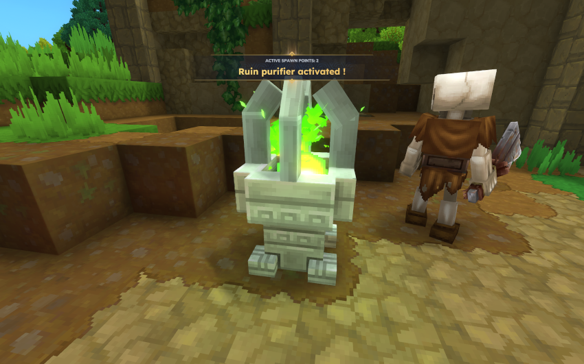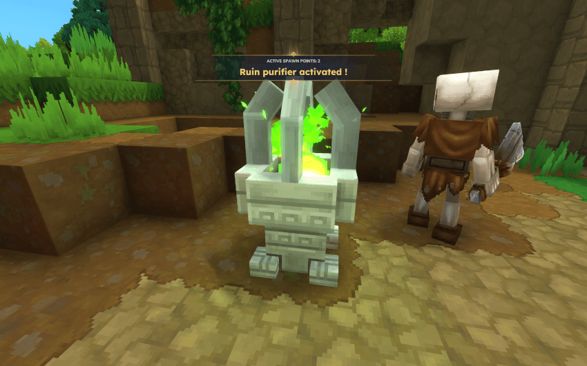 - Placement: Position the crafted Ruin Purifier block within the zone you wish to clear.