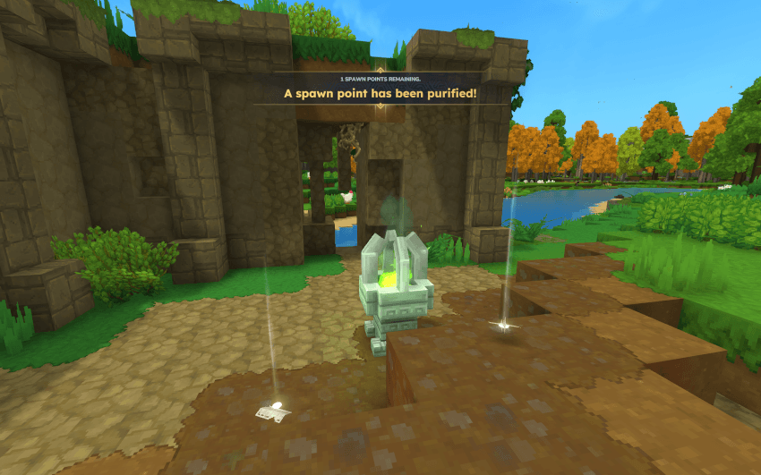 - Purification: As the block works, it will broadcast a message whenever a spawn point is successfully removed. The spawn point is removed when the corresponding entity is killed. You can interact with it once again to get a real-time count of how many active spawn points remain in the area that can still be deleted.