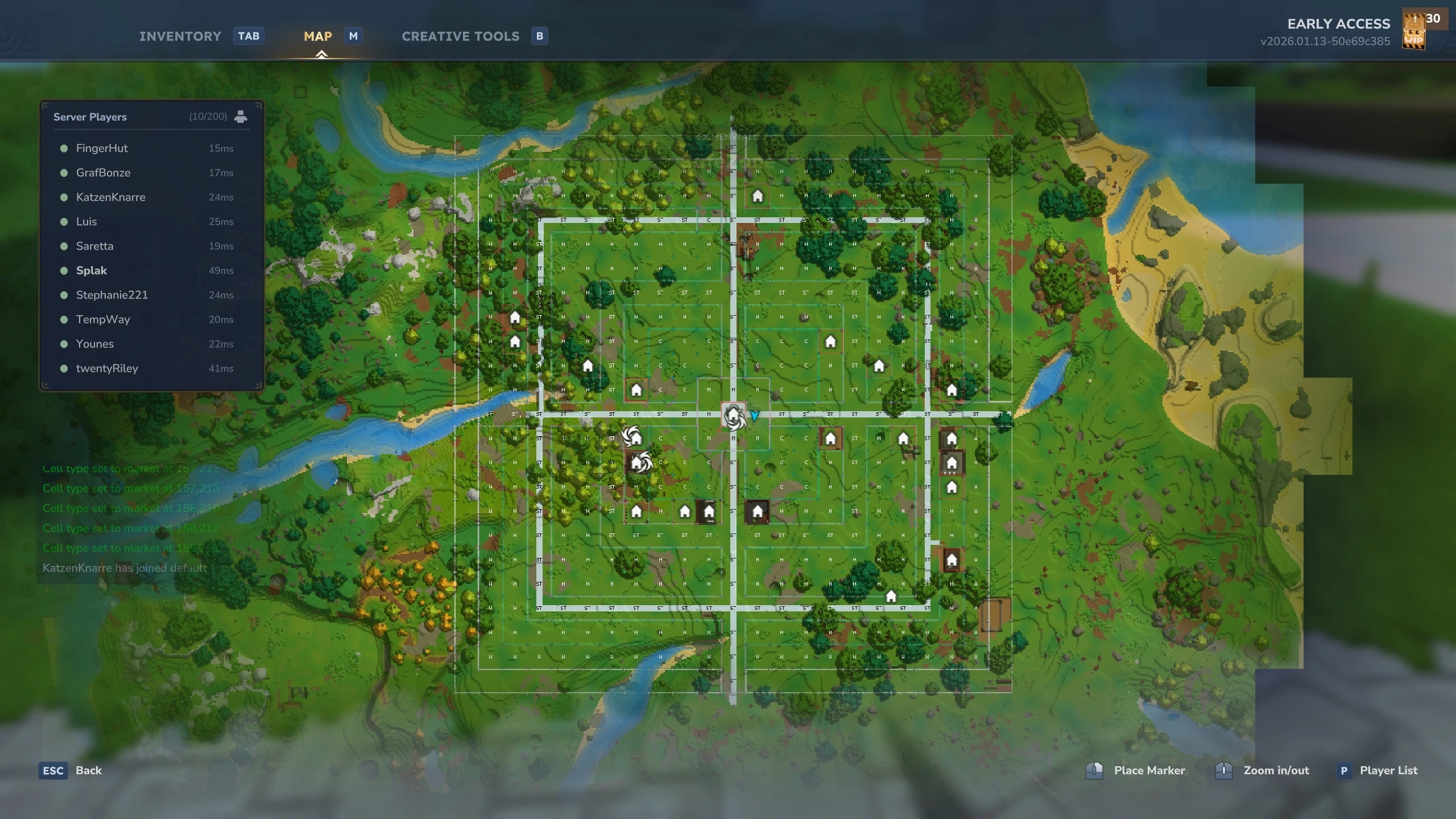 Shows the world outer border in the game and the areas with current type (as color) on the map. [This is globally! Everyone can see it] |