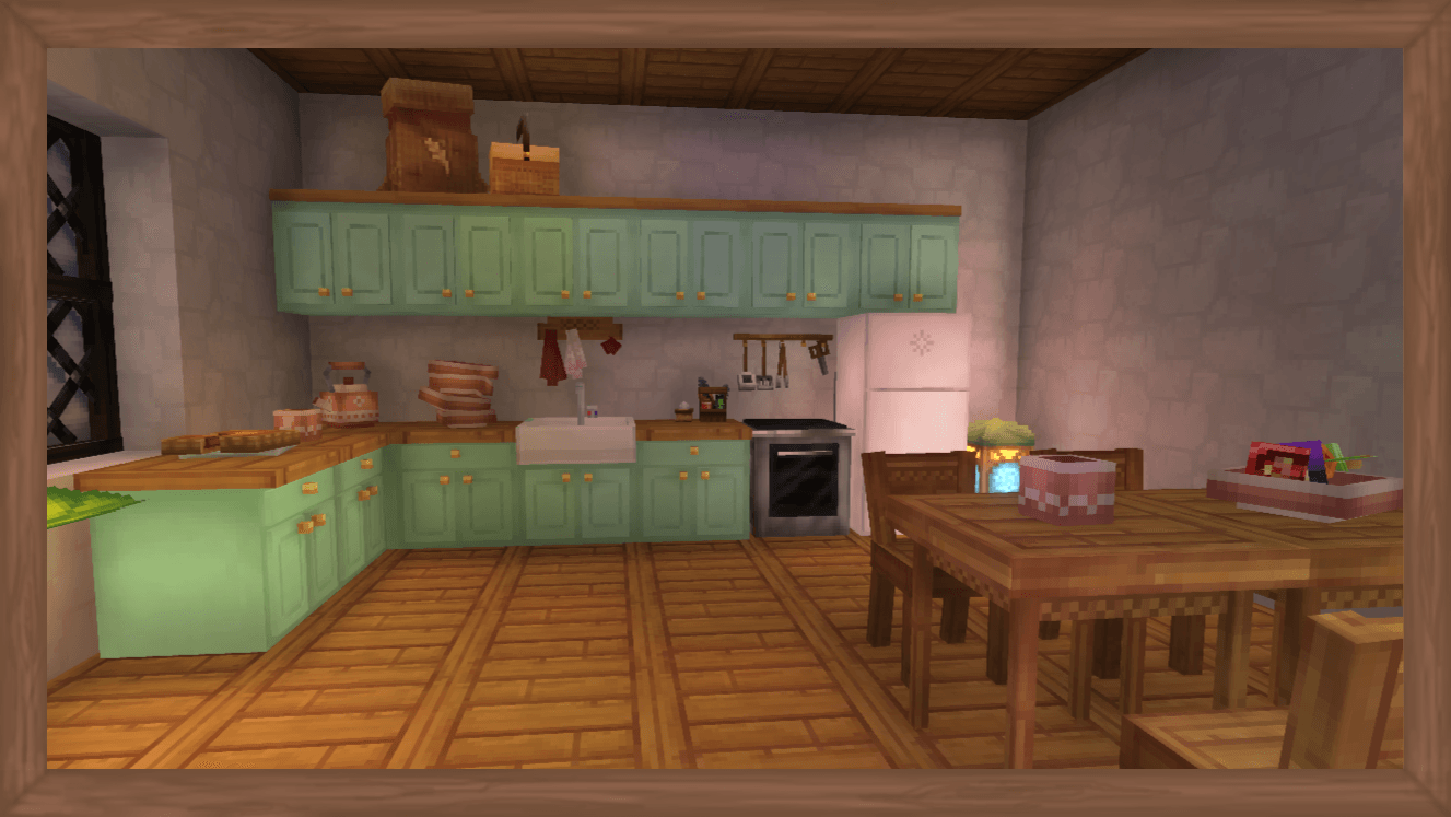 Мод включает в себя 4 кухонных набора мебели и 4 стола и стульяПодходит как для современных, так и для более расслабленных интерьеров в скандинавском стиле. В целом, особенности моды 40+ элементов, охватывающие все варианты мебели и декора. Он добавляет a Функциональный холодильник для хранения пищевых продуктов и а кухонная плита Это позволяет готовить. Для атмосферы есть настенные элементы декора и 4 чайных набора с функциональными чайниками — позволяя вам заваривать чай и делать небольшой перерыв в своих приключениях.