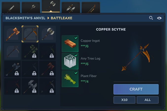 Takes scythes from the game files and makes them craftable and usable. Has multiple tiers of scythes to progress with.
