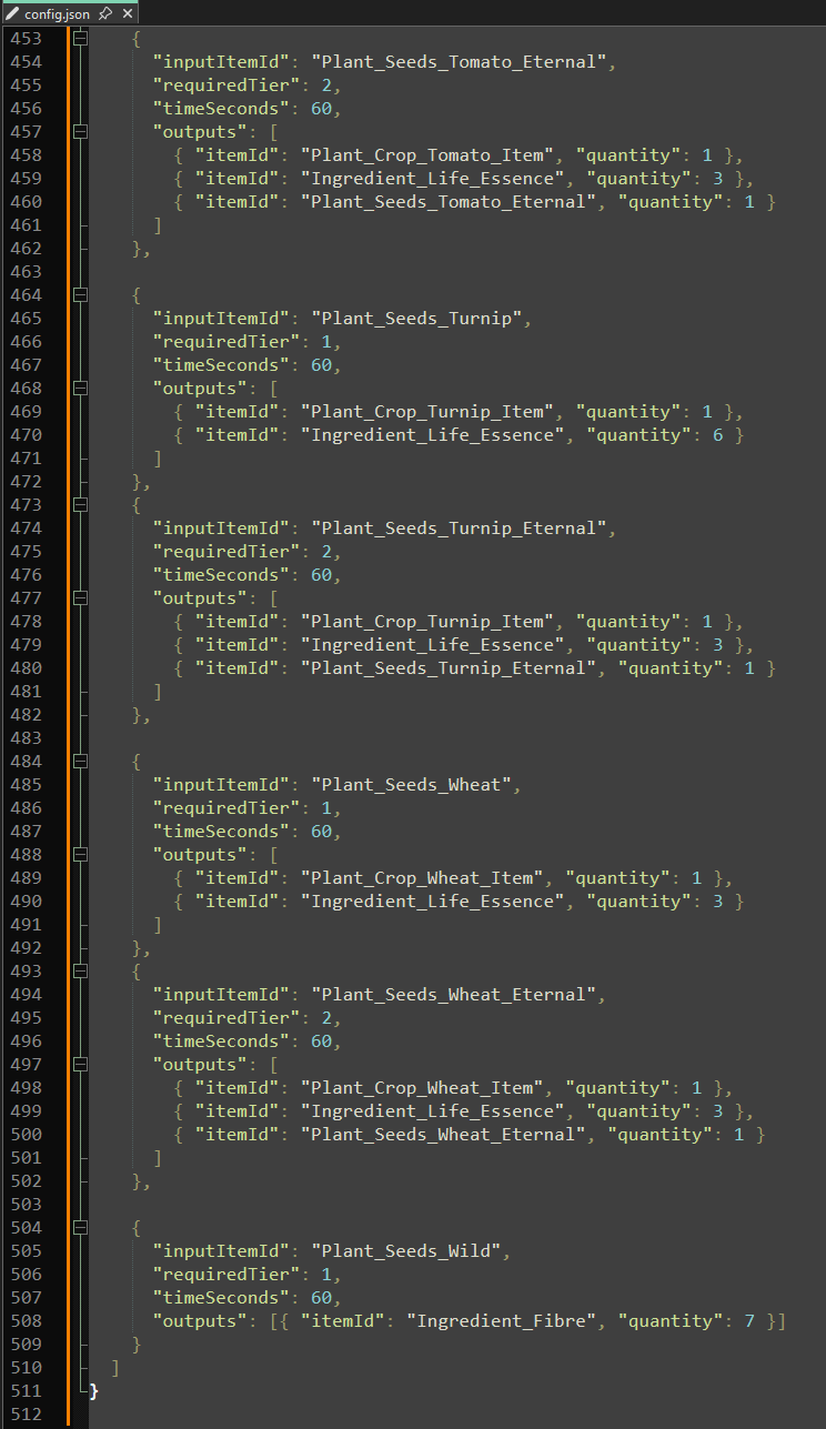 { "inputItemId": "Rock_Crystal_Purple_Block", "requiredTier": 1, "timeTicks": 60, "outputs": [ { "itemId": "Rock_Crystal_Purple_Small", "quantity": 3 }, { "itemId": "Plant_Seeds_Carrot", "quantity": 1 } ] },Mod integration (unchanged)