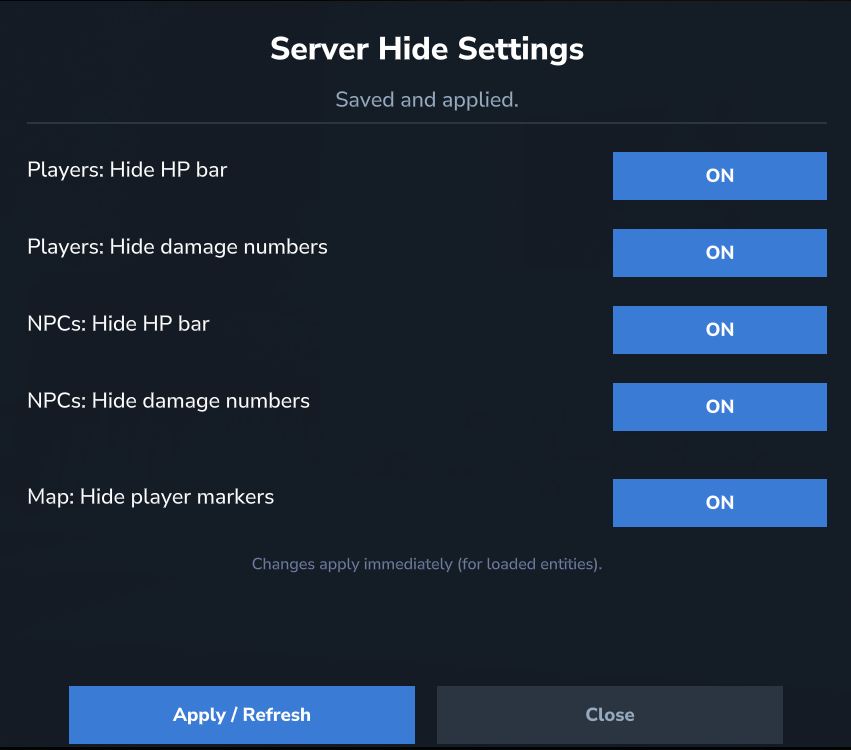 - ✅ Hide HP bars above entities