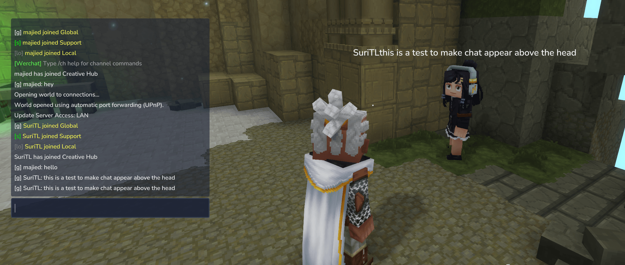 - Makes chat appear above player's head. (This makes the username disappear as the chat appears)