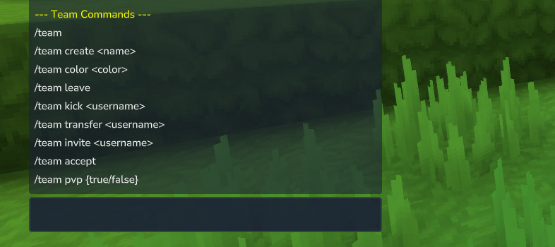 Просмотреть все команды в игре, набрав «/team help»