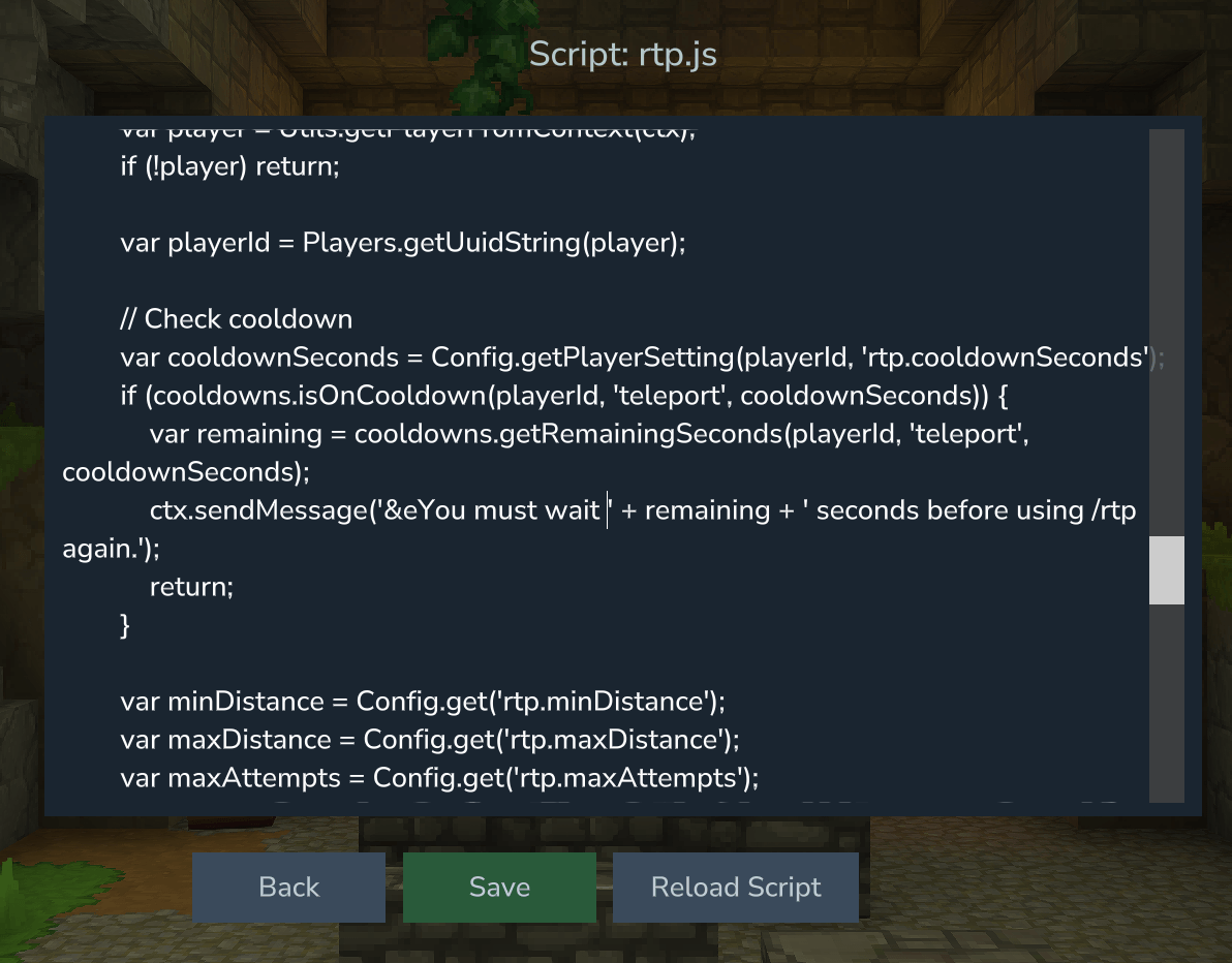 /simplescripting reload- Hot reload all scripts/simplescripting info- Plugin information/tp <player>- Teleport to a player/tphere <player>- Teleport a player to you/playerinfo <player>- View player details/players- List online players