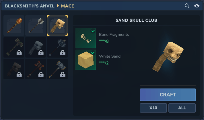 Adds clubs made with the skulls and spines of skeletons.