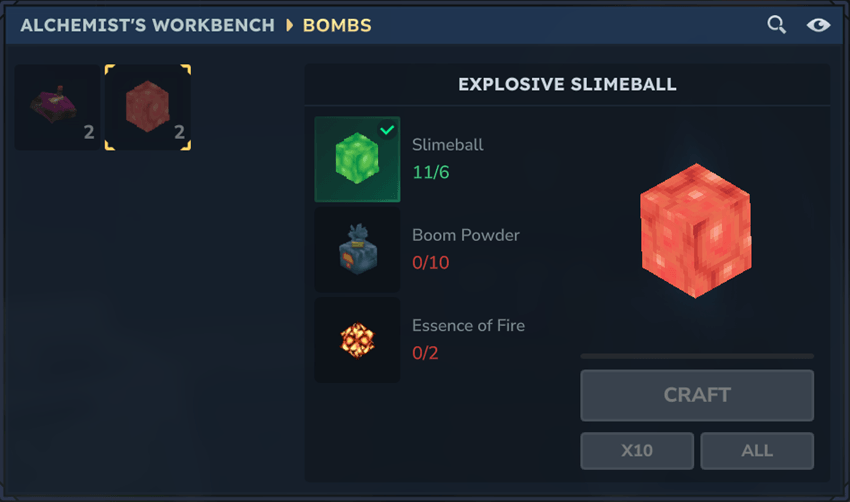 The Взрывные шарики слизи могут быть изготовлены в Обсуждение Alchemist's Workbench На вкладке Бомбы.