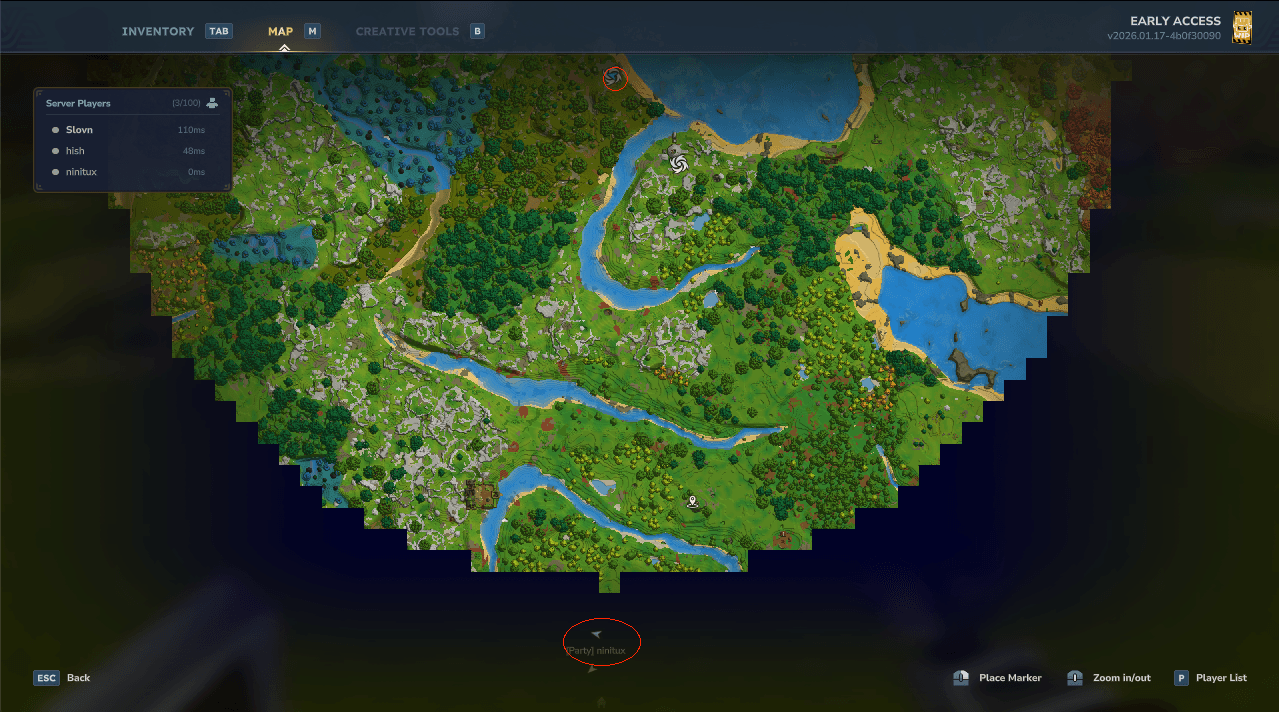 ✅ Party member markers show on BOTH the world map and the compass