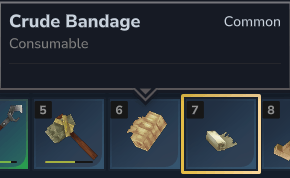Crude Bandage – Stops all bleeding effects. Can be crafted in your inventory or at a workbench.