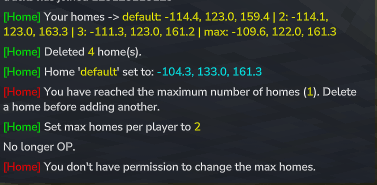 - Multiple Homes: Players can set multiple named homes (configurable limit)