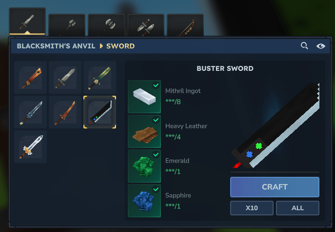 The Buster Sword can be created at any Tier 3 Blacksmith Anvil!