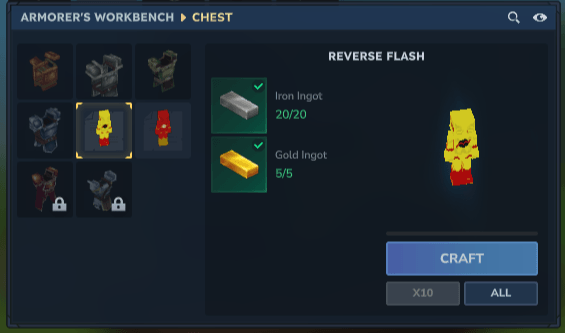 Добавить Флэш и Обратный Flash Костюмы, которые увеличивают скорость движения игрока.