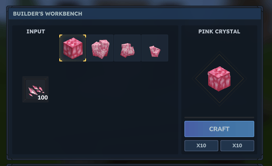 It adds the missing pink variant of the game's crystal shards, including all craftings that crystal shards usually have, so you can now break, collect, and craft pink crystals on exploration mode, just like you usually can with all other crystals! no idea why the game is missing those.