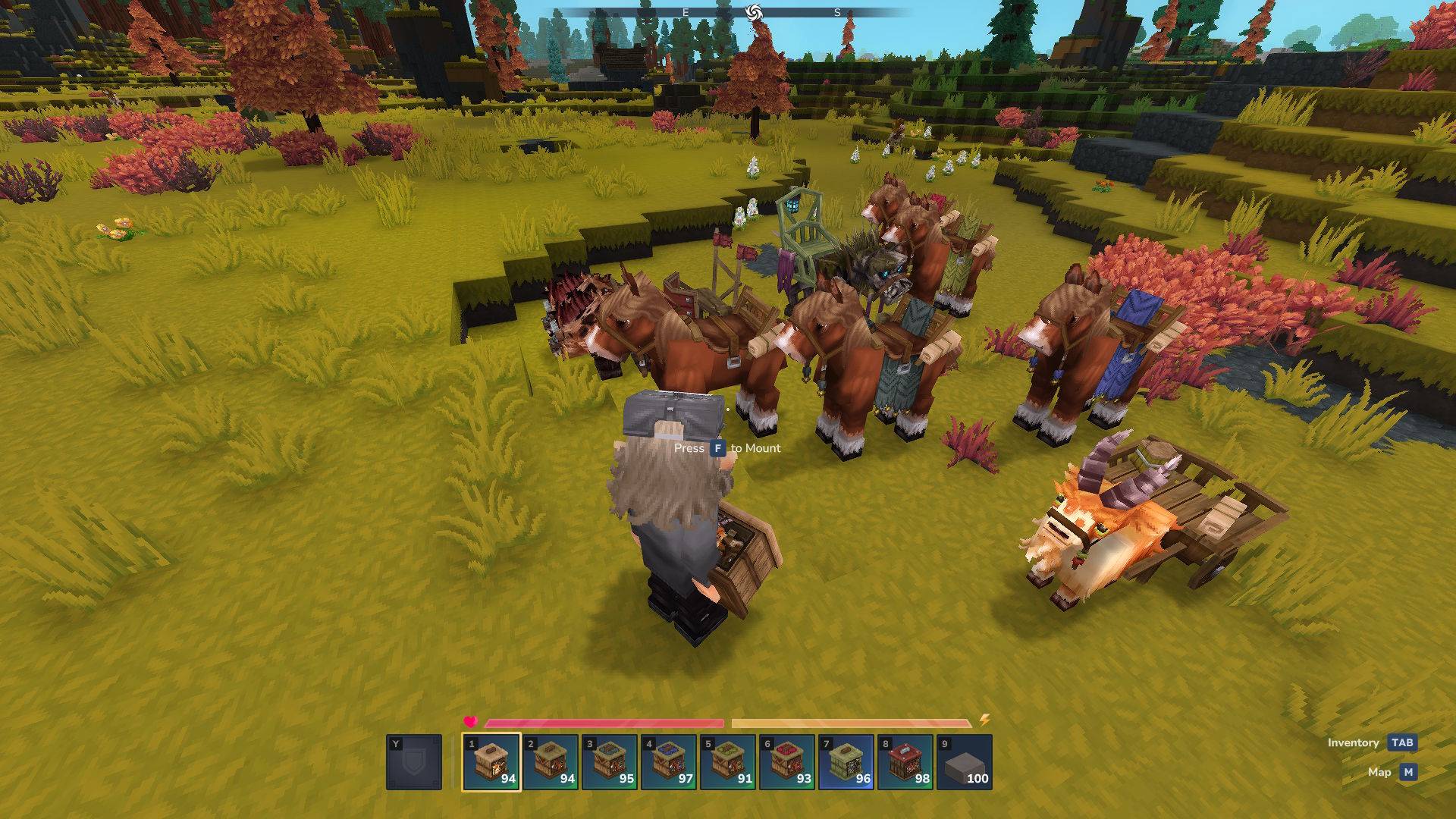 - Mounts can get stuck in the walls - a common bug in Hytale where the game tries to quickly move you backwards from being stuck inside solid blocks while you are holding W(forward - holding W in this case starts to move you quickly backward). The issue here is that player sits slightly at the back of the model so if you accidentaly 'scratch' a wall behind you at the wrong angle(player model slightly clips into a block), trying to turn away from the wall and moving forward, Hytale will think you are getting stuck head first and just starts to move you backwards right into the wall, or a mountain lmao. So I dont recommend going into caves and such tight, geometry heavy places. Most noticable with mounts where the palyer sits back in the cart, mounts where you sit on top of their back are mostly okay. But you can use this for fun if you want, just squeeze near some tight wall, turn on the spot with your back towards the wall and move forward, which yeets you backwards, sinking into whatever landscape is behind you.