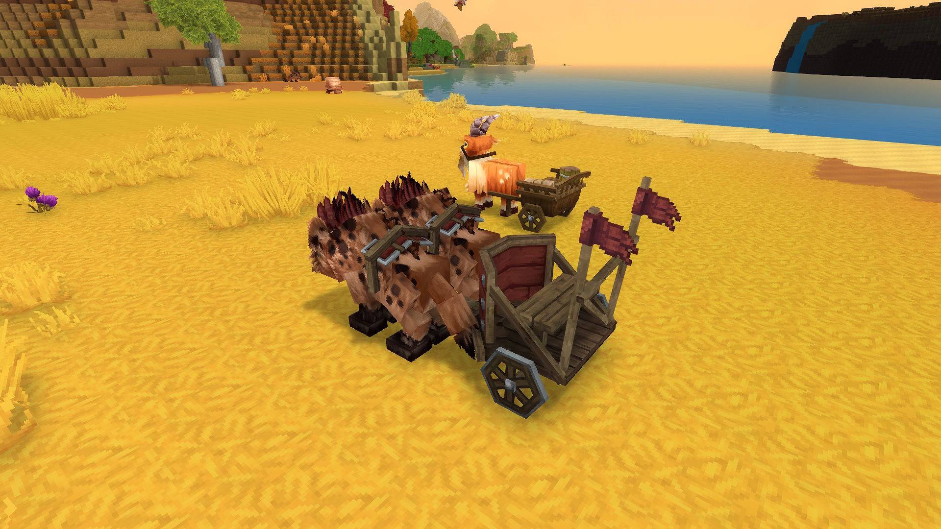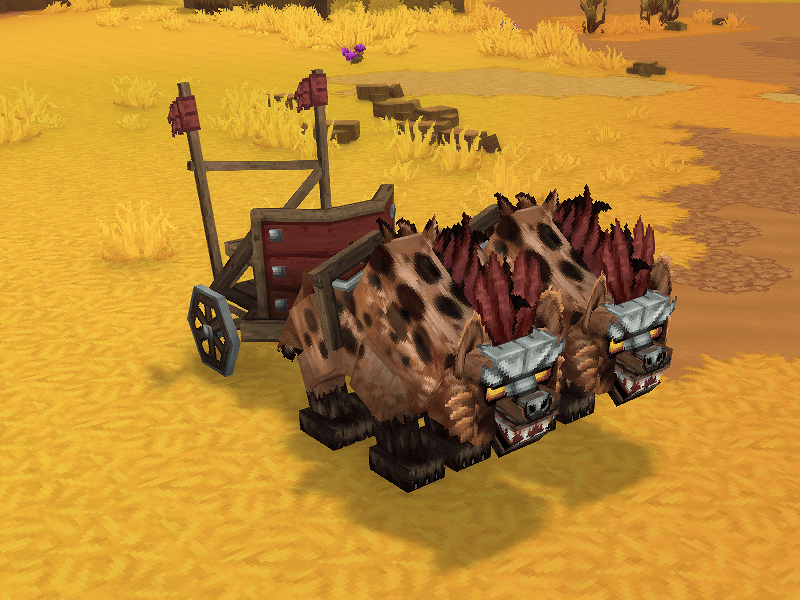 - Some animations feel clunky - all mounts are fully animated, including the carts moving, except some parts like jumping feels a bit weird. When getting off the mount, they are motionless for a second before their idle animation kicks in, I dont know why it does this. Also, I had some issues exporting goat's cart animations and only the wheels ended up working for some reason. Hyenas cart works and moves better, but I animated only the run animation for now since I didnt know if it would break or not. I will try to look at this later, as the goat's cart animations are actually super fun to look at, so I will try to get them to work.