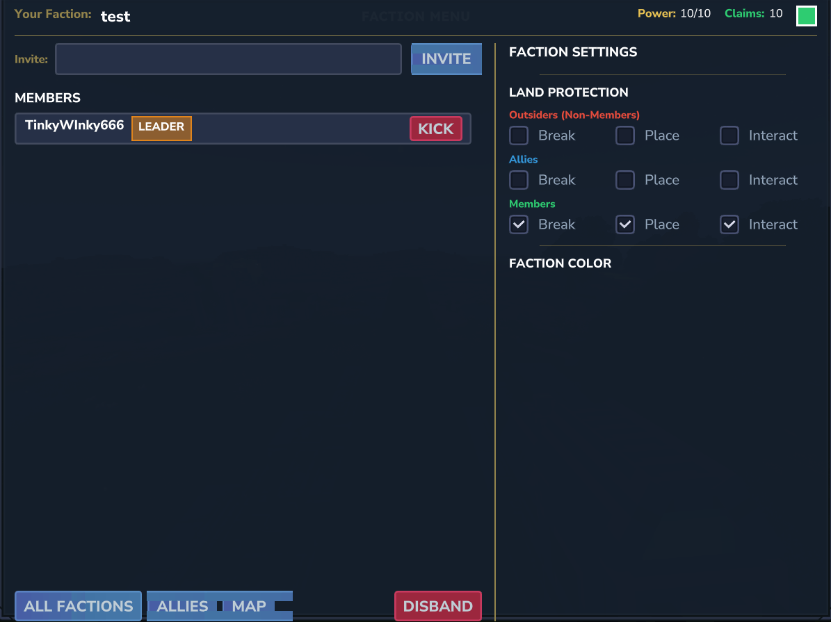 - Protected faction land